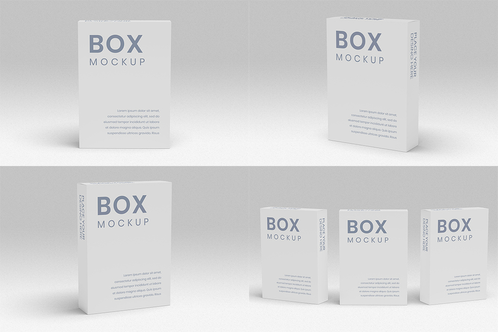 Box Mockups is a minimalist box mockup create with photoshop to showcase your box design. This mockup is easy to use because using photoshop "smart object" double clicks in the smart object layer, then drag and drop your image, and this mockup has an unlimited feature for changing its background-color. Also, you can customize the background image.