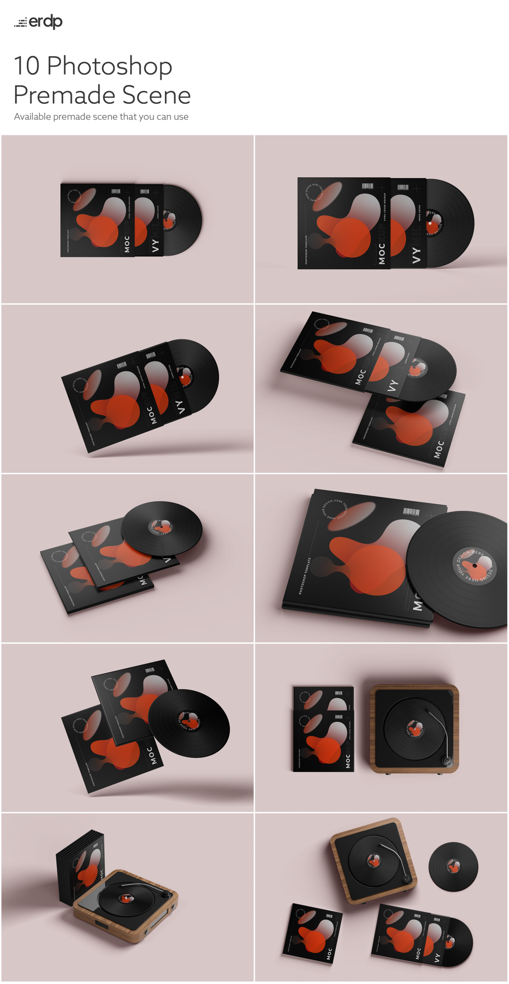 Bring your designs to life with this realistic, high-quality vinyl record mockup. It is perfect for music artists, designers, and creators looking to showcase album cover art, promotional materials, or portfolio presentations with a professional edge.